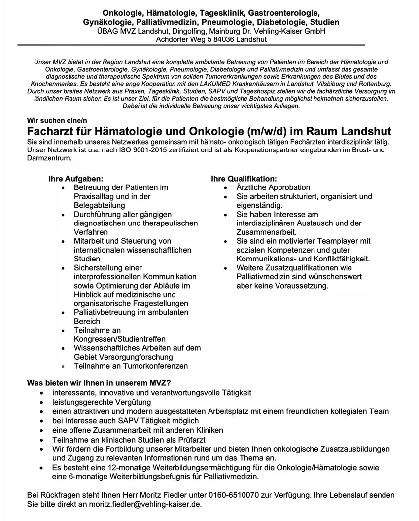 © Medizinisches Versorgungszentrum Dr. Vehling-Kaiser GmbH · Hämatologie · Onkologie · Tagesklinik · Gastroenterologie · Medikamentöse Tumortherapie
